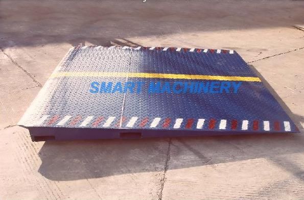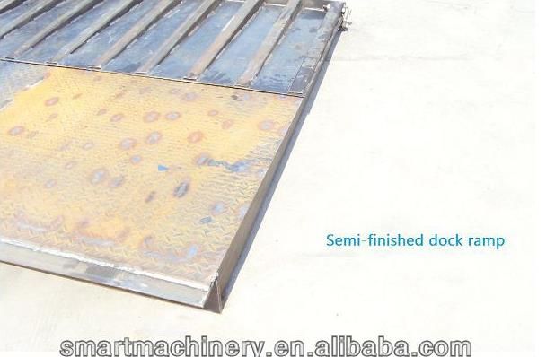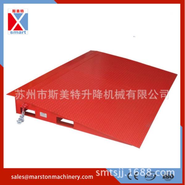 1集裝箱坡道平臺產品說明: 1)裝卸坡道平臺采用5mm厚花紋防滑鋼板,結構堅固耐用, 2)坡道平板帶有貨叉孔,斜坡部份可以折疊,便于運輸,